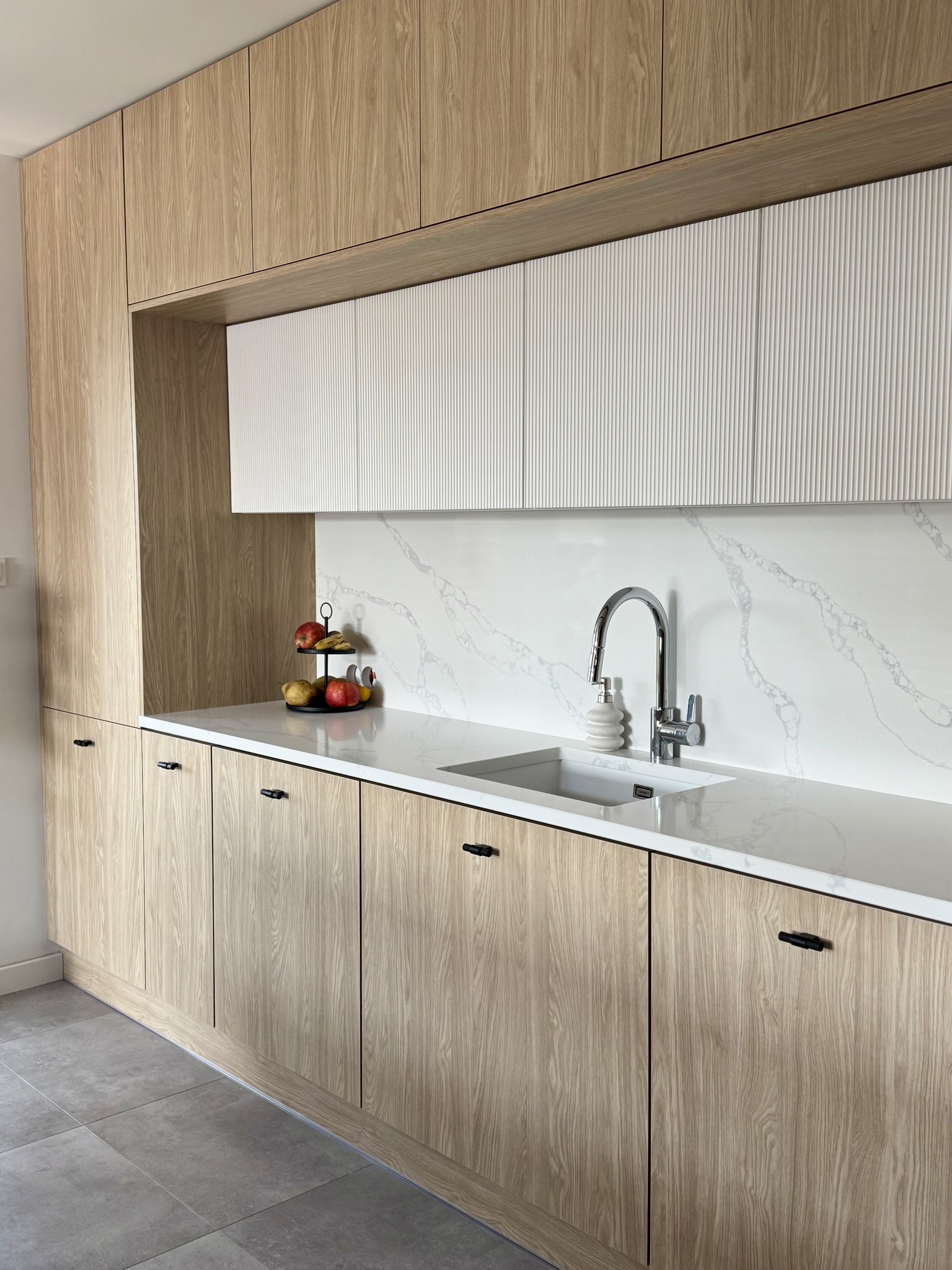 Dzięki bogatej ofercie materiałów i systemów jesteśmy w stanie zrealizować projekty w różnorodnych stylach – od klasycznych drewnianych mebli, przez nowoczesne rozwiązania z akrylu, aż po przytulne i praktyczne zestawy z płyty laminowanej. Tworzymy meble zarówno w wersjach ekonomicznych, jak i premium – oferując szeroki wybór prowadnic, systemów, koszy i funkcjonalnych dodatków, które wpływają na komfort codziennego użytkowania.