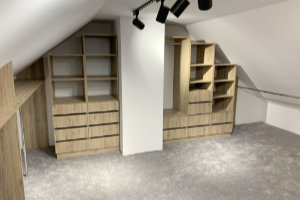 Obecnie projektujemy, wykonujemy i montujemy również meble łazienkowe, garderoby, szafy wnękowe oraz zabudowy. Podejmujemy się także nietypowych i indywidualnych realizacji, takich jak wyposażenie gabinetów, biur, salonów czy innych przestrzeni użytkowych.